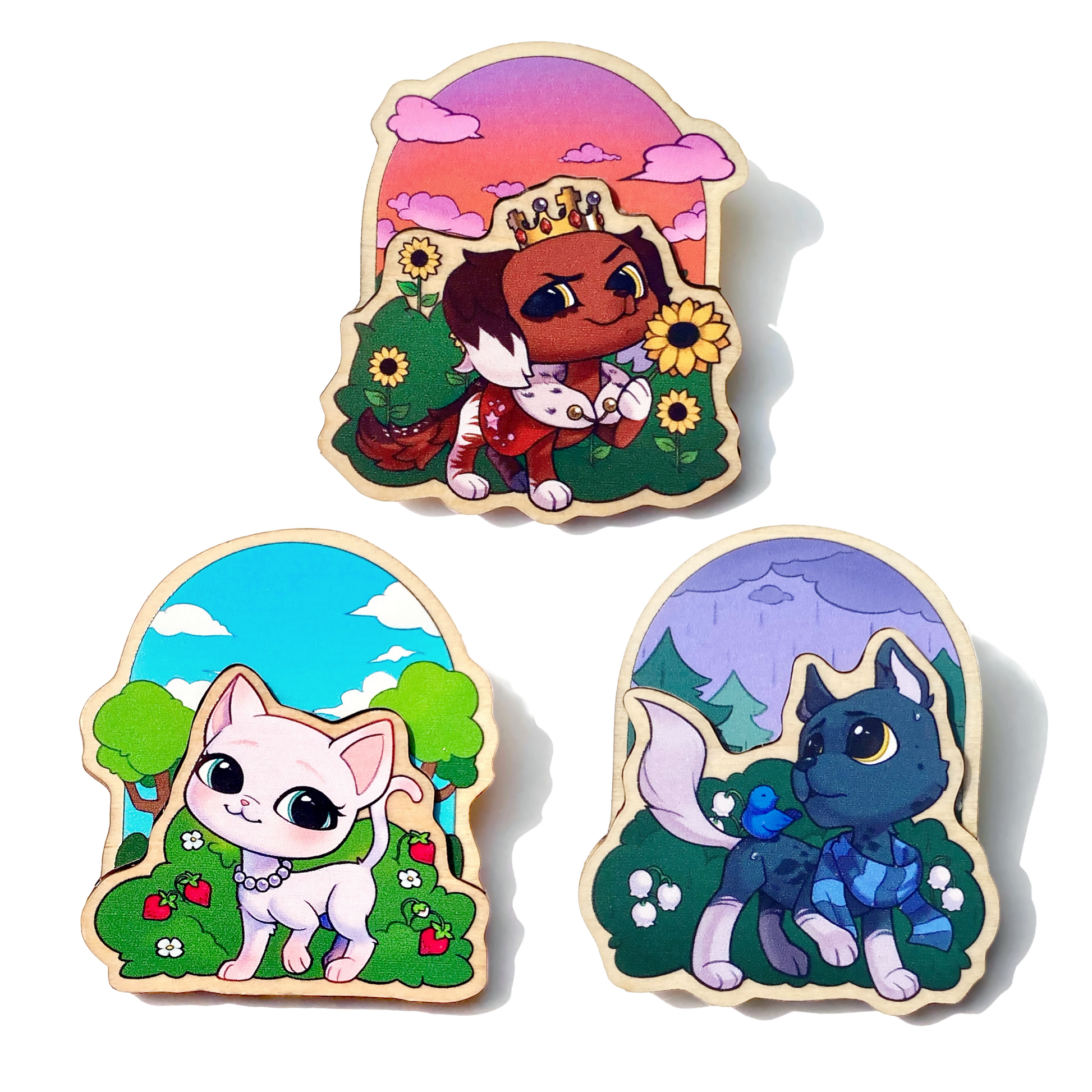 🌿Wooden Pins feature two layers, and are soft to the touch. Featuring main cast from Extraordinary Magic enveloped in flowers and a serene scene.